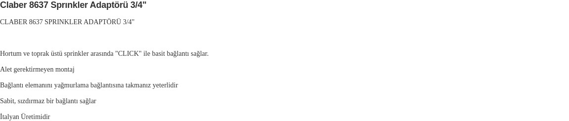 Claber 8637 Spring Bağlantı Adaptörü 3/4''